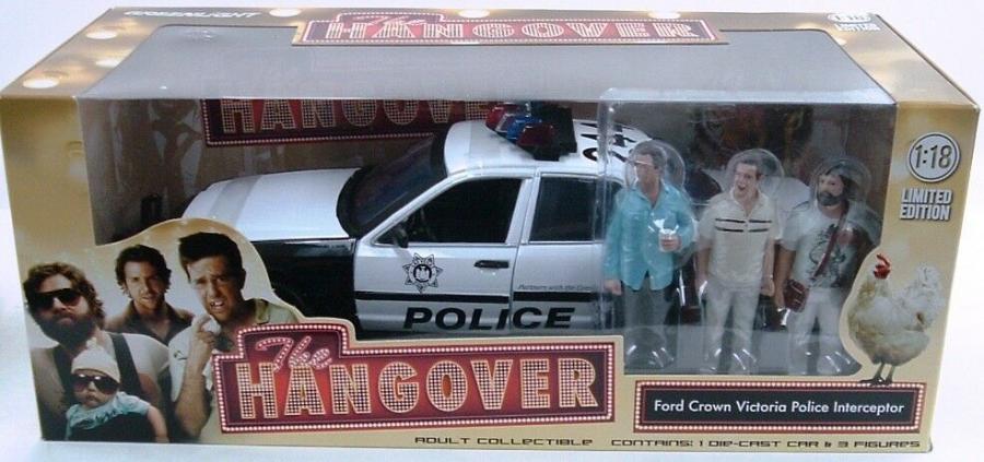 Hangover Ford Crown Victoria Police Interceptor with Figures: From the blockbuster The Hangover movie! Highly-detailed recreation of the 2000 Ford Crown Victoria Police Interceptor. Exquisitely crafted 1:18 scale die-cast metal vehicle! Fans of the hit The Hangover film can now own a part of the movie! The Hangover 2009 Movie 2000 Ford Crown Victoria Police Interceptor 1:18 Scale Die-Cast Metal Vehicle with Figures features the police car from the movie. Made from die-cast metal, this great vehicle even comes with scale figures Stu, Phil, and Alan - it is a must-have for fans of The Hangover! Exquisitely crafted in the 1:18 scale. Limited Edition. Ages 15 and up. Age: 15+