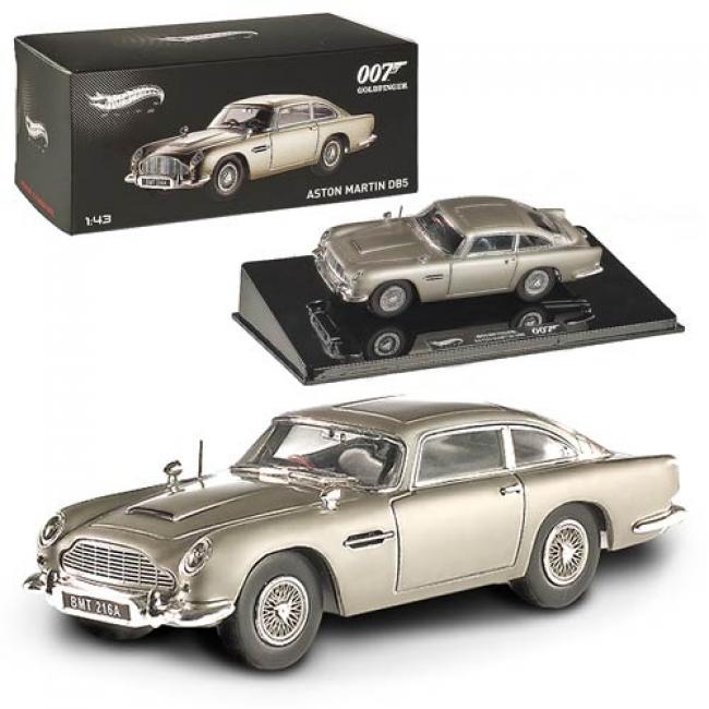James Bond Goldfinger Aston Martin DB5 1:43 Hot Wheels Elite: Directly out of the hit James Bond film Goldfinger! Highly detailed 1:43 scale Hot Wheels Elite version of James Bond s Aston Martin DB5. Measures 6-inches long! Directly out of the hit James Bond film Goldfinger comes Bond s Aston Martin! This James Bond Goldfinger Aston Martin DB5 1:43 Scale Hot Wheels Elite Die-Cast Vehicle features the impressive vehicle in its distinctive Silver Birch color. This great Hot Wheels Elite Cult Classics Vehicle has been recreated in the 1:43 scale using die-cast metal and measures 6-inches long x 3-inches wide x 2 1/2-inches tall. Hood opens, but doors do not open.
