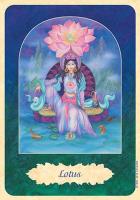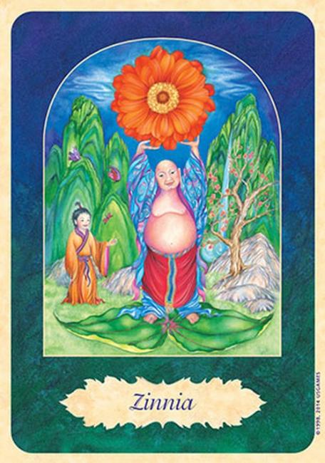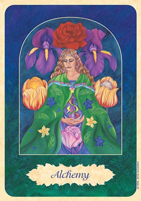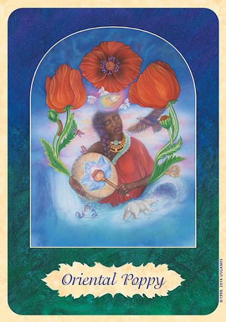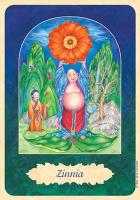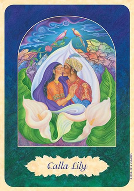 This 32-card deck was designed by Isha Lerner, co-creator of the Inner Child Tarot Deck. This deck is designed to be used in several different ways. It can be used as a divination system. It can be used in conjunction with flower essences. And it can be used for meditation. The cards measure 3 1/2" X 5". Each card has a scene that is framed by an archway. The card s flower is depicted in the archway, with people, or creatures, or angels, or gods, or goddesses. The card name is in a leaf shaped frame in the bottom of the card. The art is good and the scenes are detailed. The overall effect of the archway, and background is quite beautiful. It feels as though you are looking through a doorway into the scene.